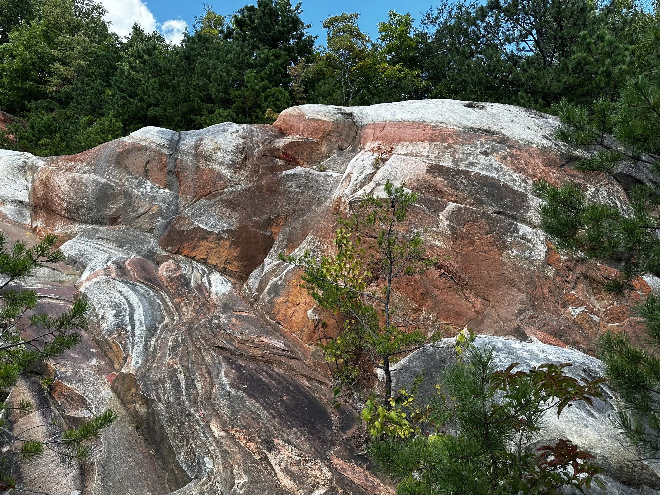 3rd stop: Rocky Mountains (in North Carolina). If you’ve explored mountains in Appalachia, you know that they’re not quite “rocky.” Many of the mountains in Appalachia are just glorified hills, but if you explore Grandfather Mountain in North Carolina, you’ll find some very challenging, craggy peaks to overcome. Here the rock is made of metamorphosed conglomerate, and they’re exposed to the elements. They’re not your typical Appalachian-type “hills” — they’re just as rugged as about any mountain you can find. Be careful if you go!